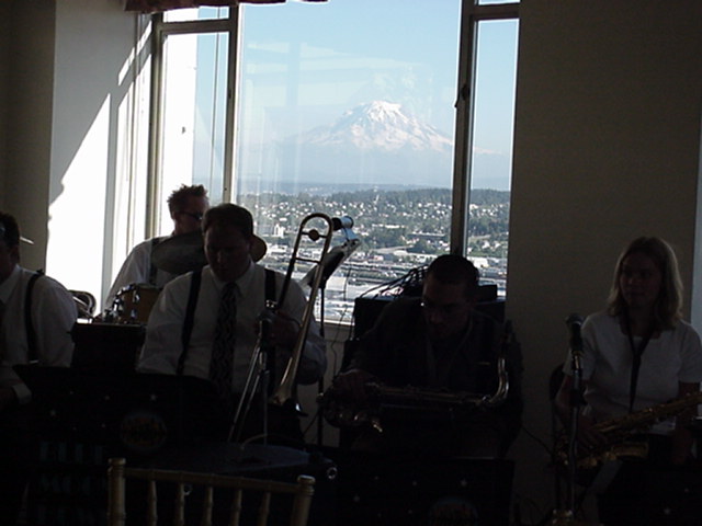 Our reception was held at the Vault in Tacoma. It was on the 17th floor with views of downtown Tacoma and Mt. Rainier. The Valult also catered the wonderful food. For music we had The Blue Moon Howlers, a 10 piece swing band. Many thanks to Wendy, Glen, Matt and Victoria for help setting things up. Also, thanks to Kyle for keeping the band under control (they were a bit loud at the beginning).